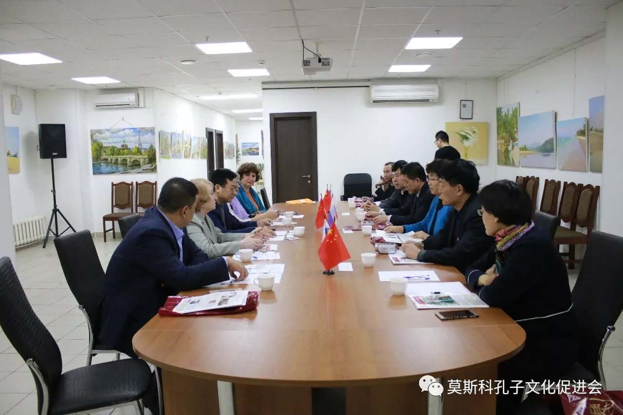 2017年11月16日,由山東省工商聯(lián)副主席孫美菊為團長的山東省工商聯(lián)訪俄代表團一行七人來到莫斯科孔子文化促進會參觀訪問。